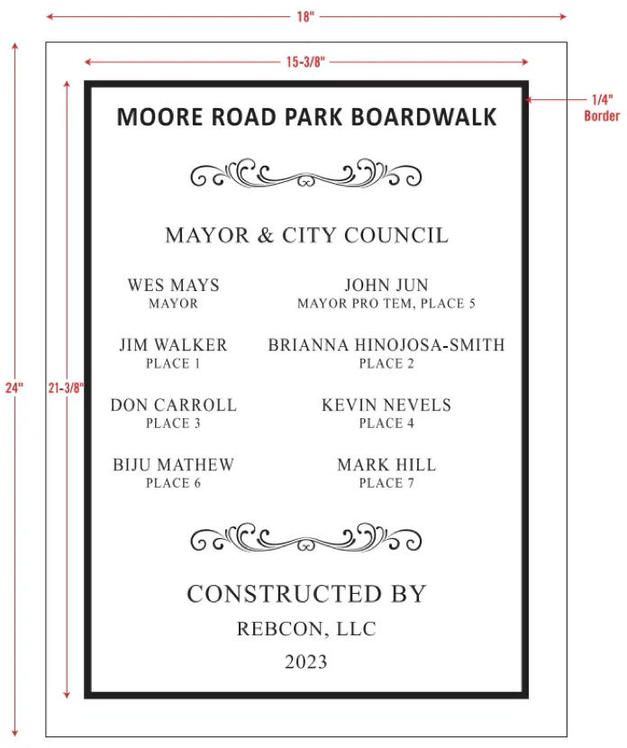 BackCustom Executive Plaque. Aluminum. Name of the company, or celebration of achievement with raised lettering and borders. Optional decorative elements like company logos or scrolls. In-house help on design for your specific project.
