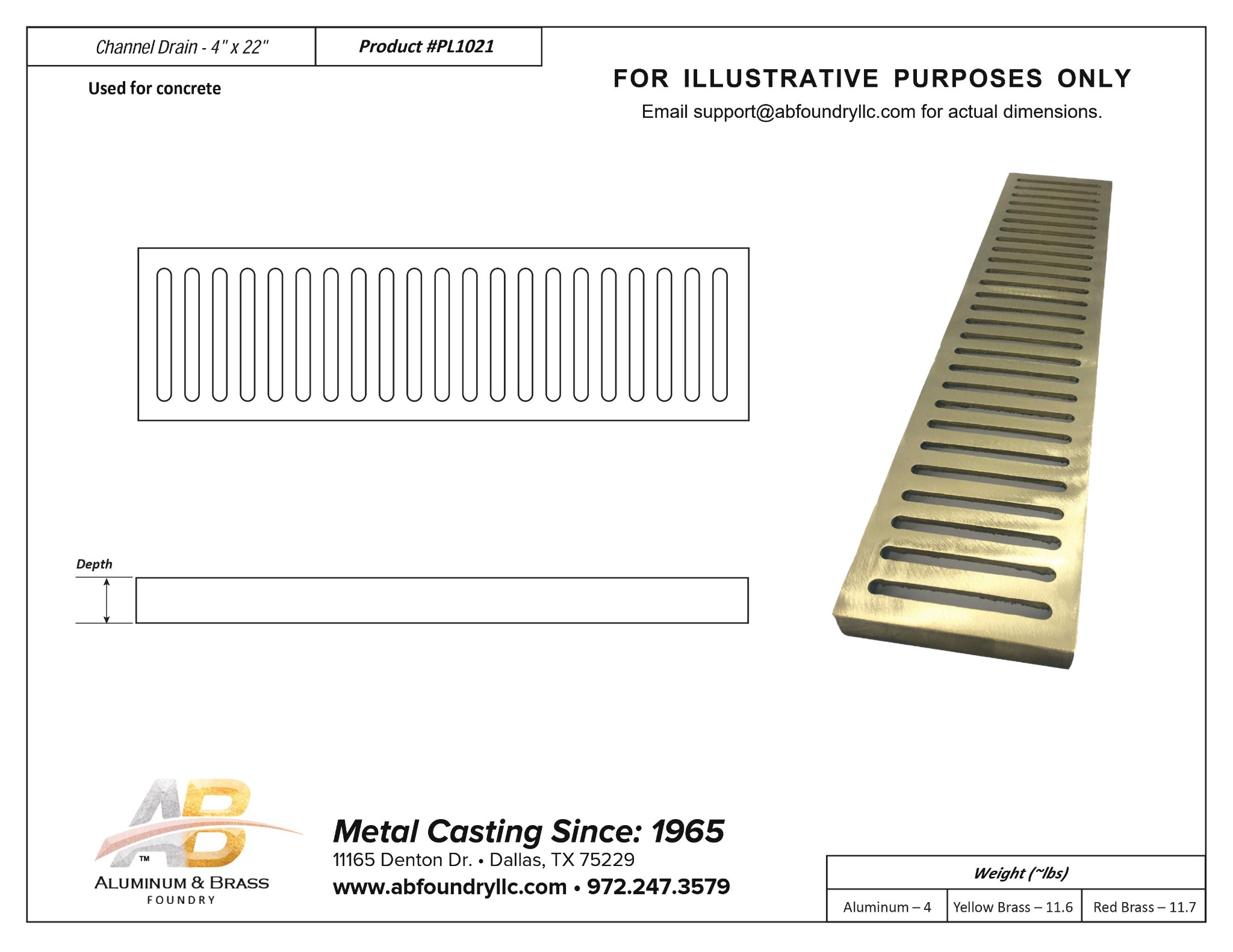 Channel Drain (Grate) - 4″ x 22” x ¾″ Aluminum