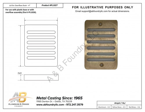 BackFor use with plastic base or with overflow assembly (Part # PL1026). Cast in Aluminum, Yellow Brass, or Red Brass.